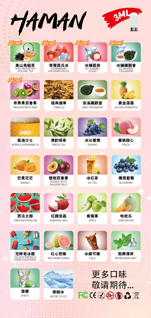 📢 HAMAN哈門通用型霧化彈強勢登場!對應 RELX 一代主機,採用3ML大容量設計,還原度高、口感飽滿,數十種超人氣風味任你選!